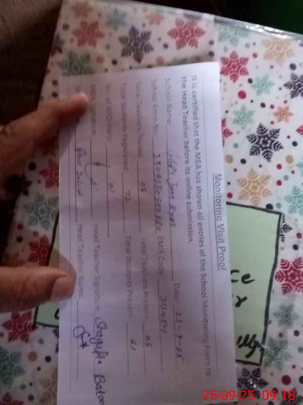 | Attendance Register | Head Teacher | MEA with School | Visit Proof |