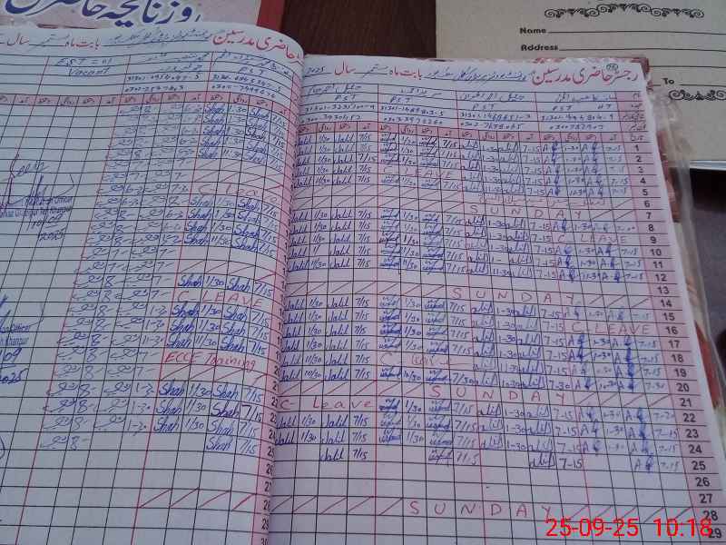 | CNIC | Full Name | Designation | R/C | Absence During Last Calender Month |
