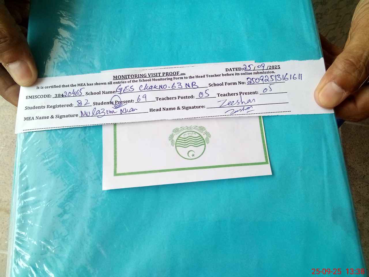 | Attendance Register | Head Teacher | MEA with School | Visit Proof |
