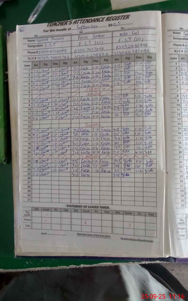 | Name: Nu**** Pe**** Designation: (School Headmaster's/Headmistress's) SST (Arts) Phone/Cell Number: 03**** |