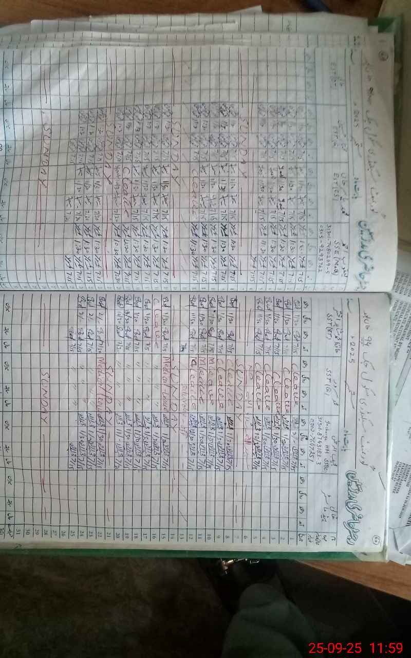 | CNIC | Full Name | Designation | R/C | Absence During Last Calender Month |