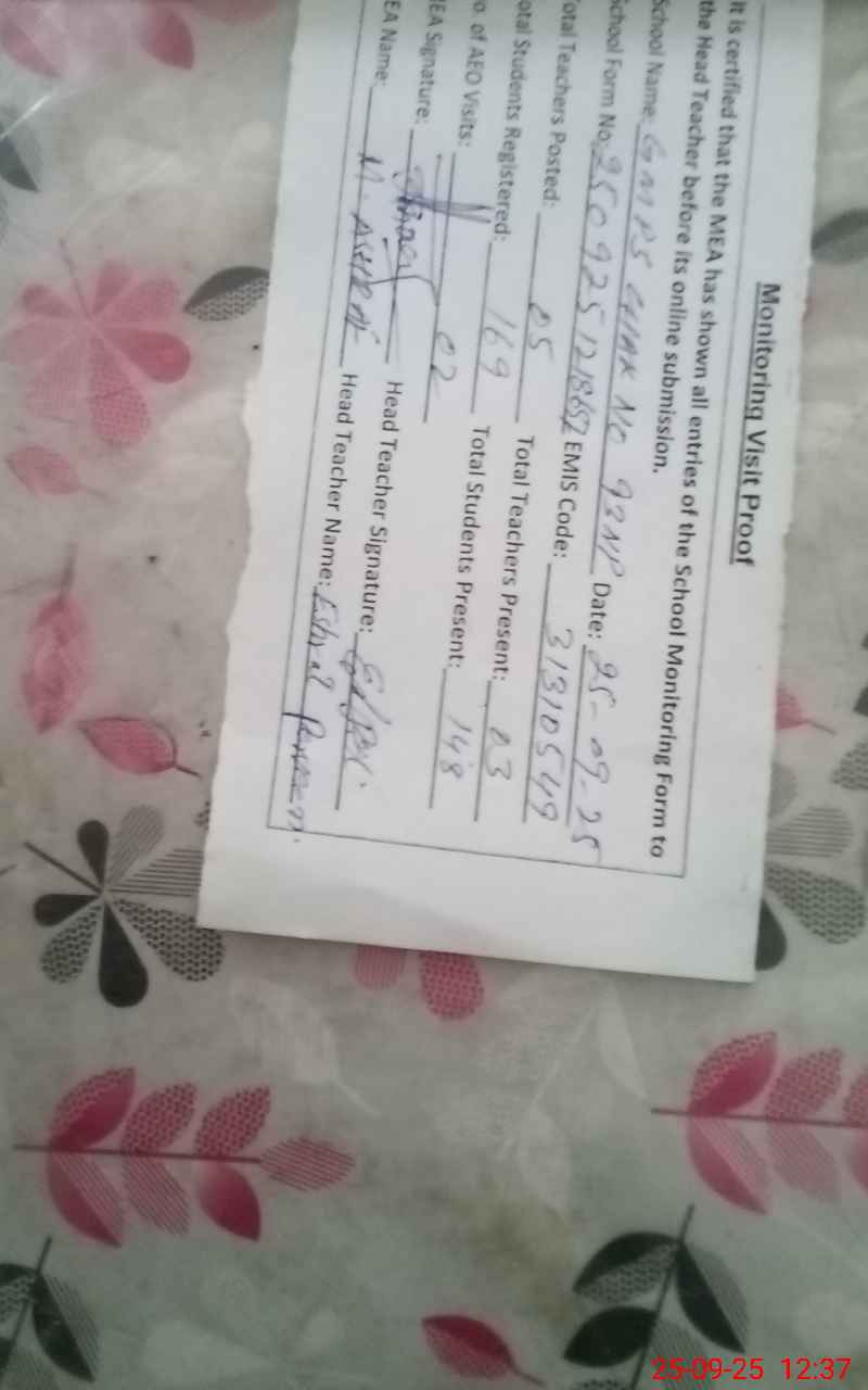 | Attendance Register | Head Teacher | MEA with School | Visit Proof |