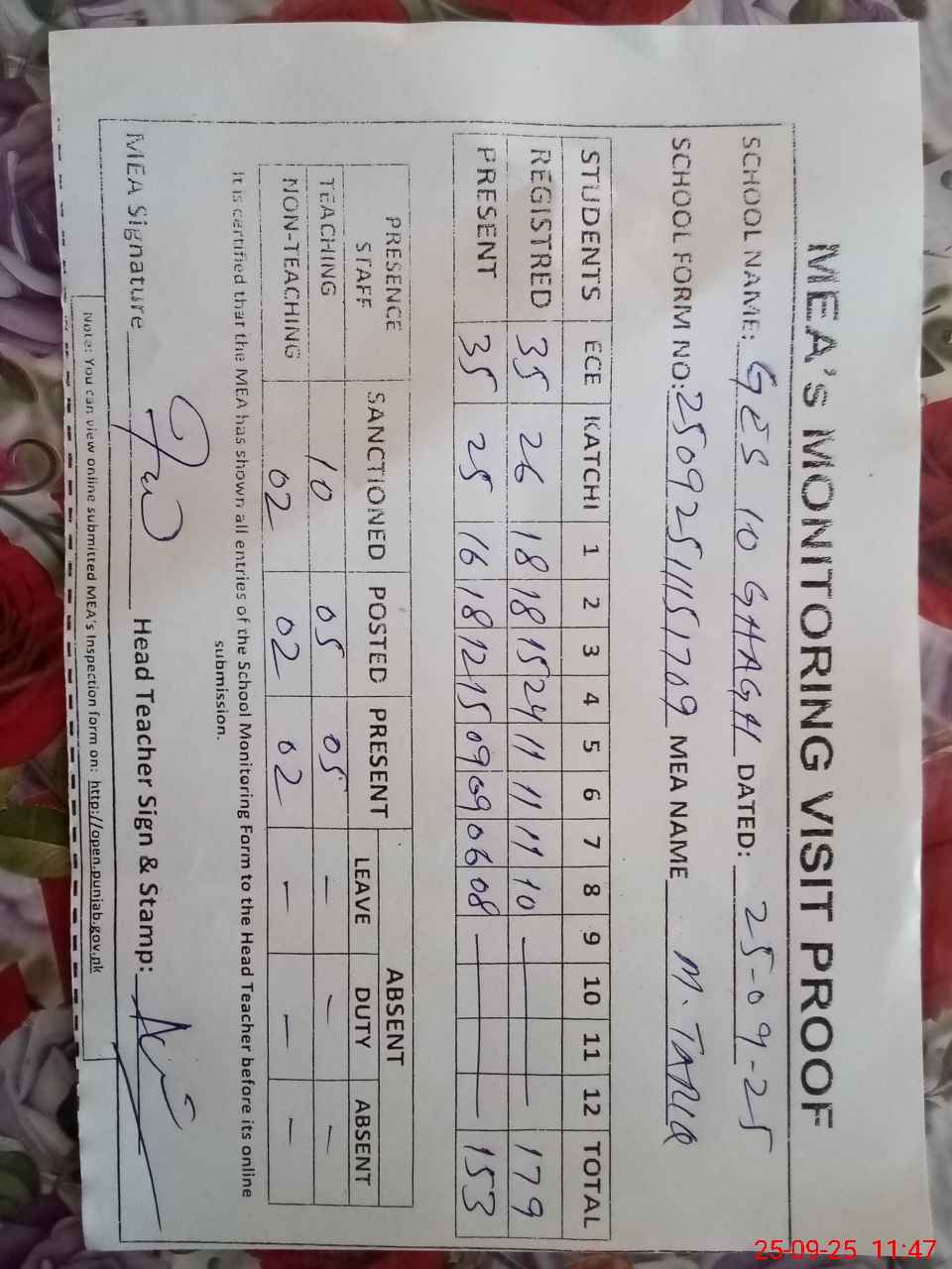 | EMIS Code: 36410085 | Name of School: GES 10 GHAGH, P/O 25 PUL, ABDUL HAKIM | |||