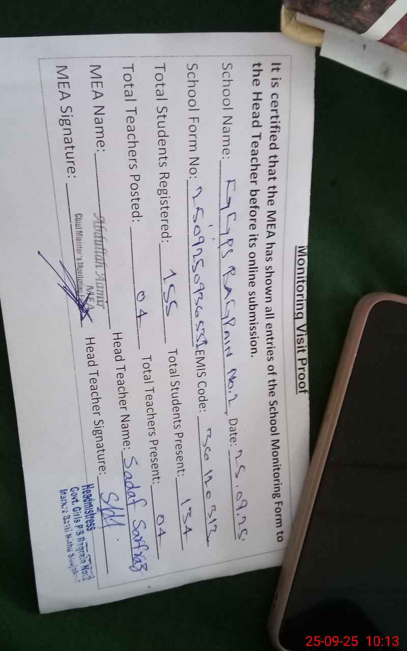 | Certified that this School was Inspected by the Undersigned MEA/DMO Today and the Information Stated Above is as Per Record. | |||||