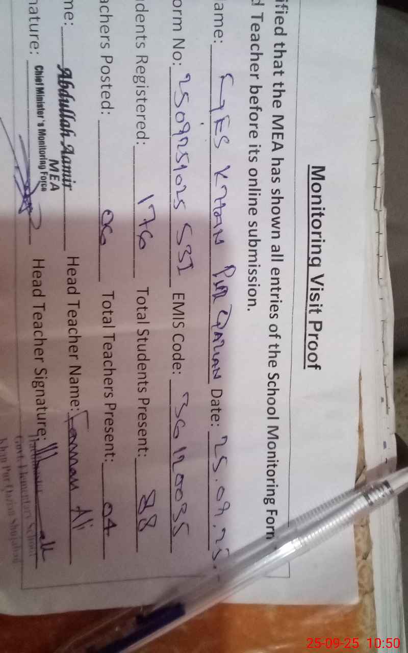 | EMIS Code: 36120035 | Name of School: GES KHANPUR QAZIAN SHUJABAD | |||