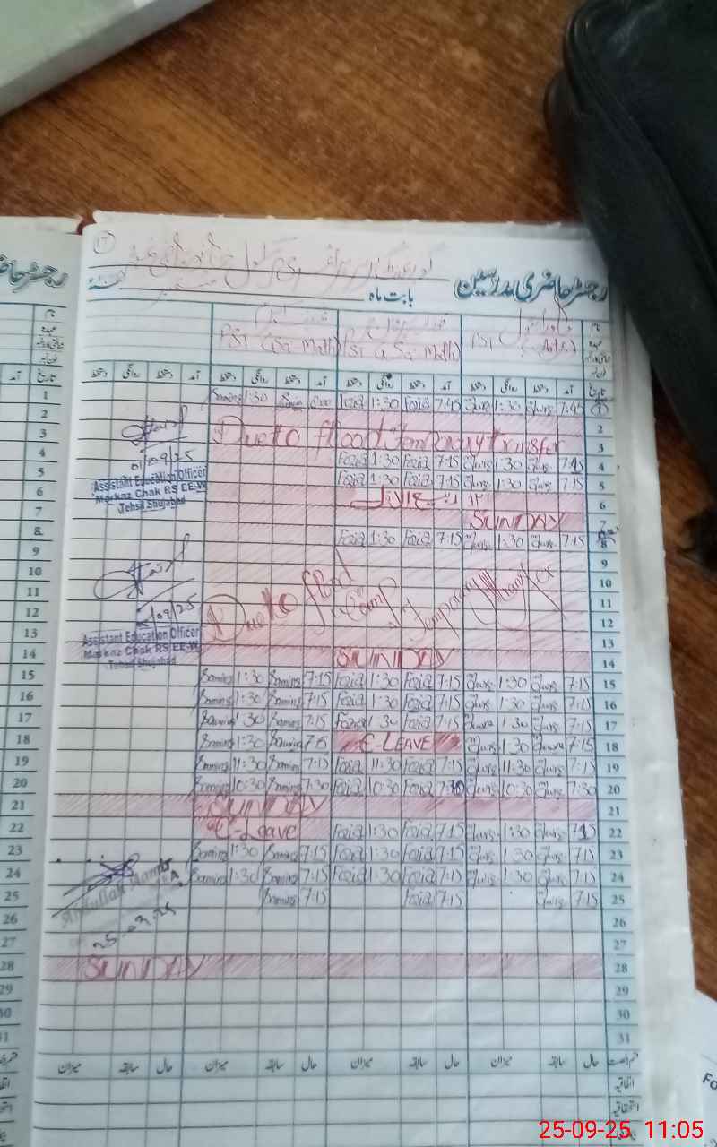 | Remarks (Use Separate Page if Required): Sis Data of students not updated Roznamcha of students not maintained Class 4th attendance register not maintained wef Sep 25 Last clander month no visit of Aeo | |||||