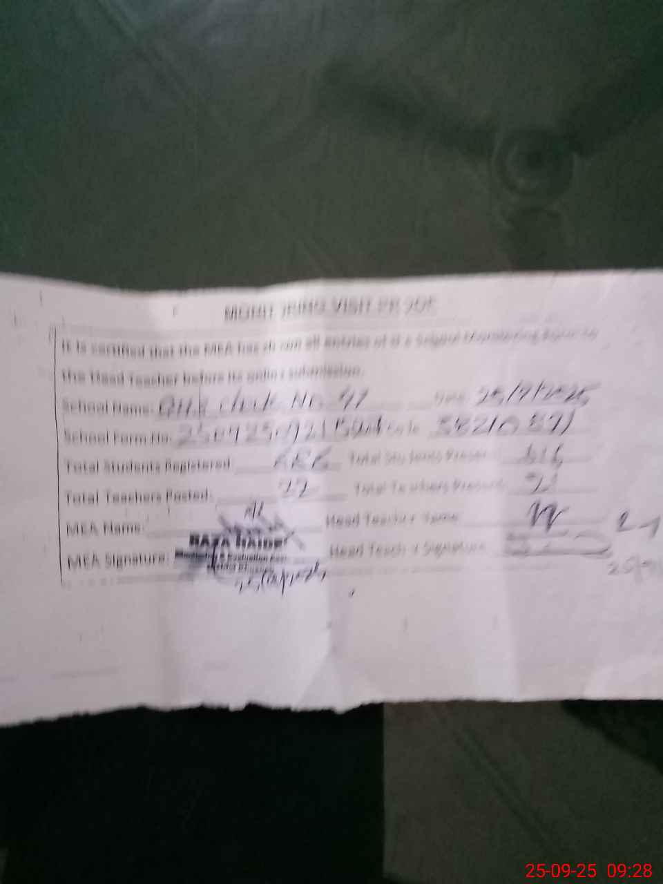| EMIS Code: 38210891 | Name of School: GHS CHAK NO. 47/MB | |||