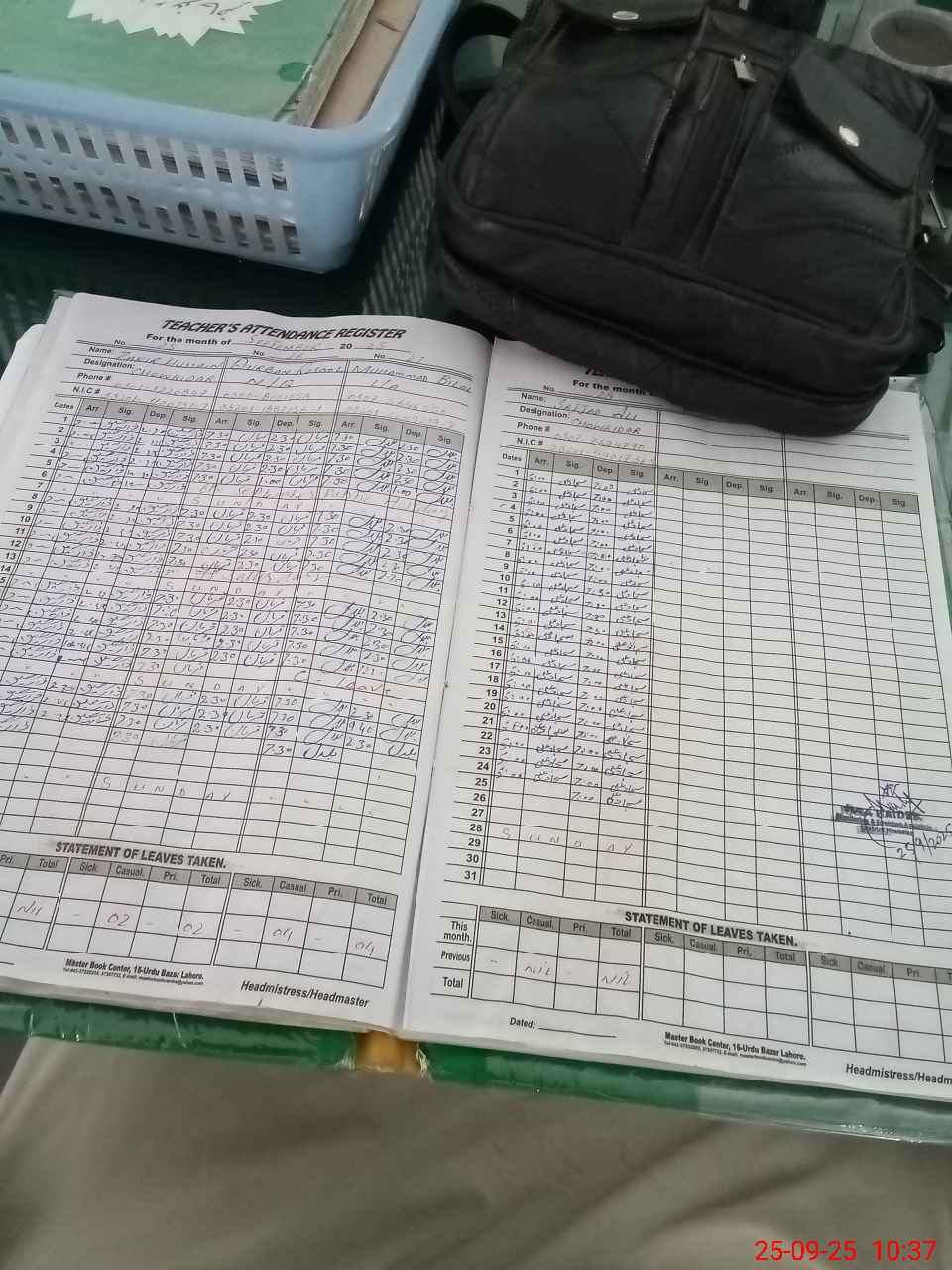 | CNIC | Full Name | Designation | R/C | Absence During Last Calender Month |