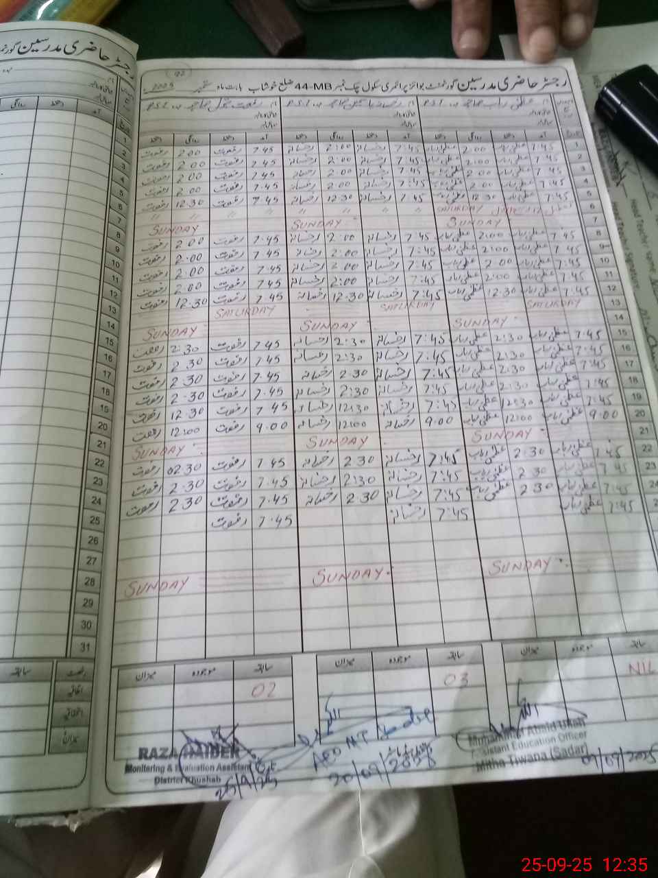 | Name: MU**** AQ**** Designation: (School Headmaster's/Headmistress's) PST Phone/Cell Number: 03**** |