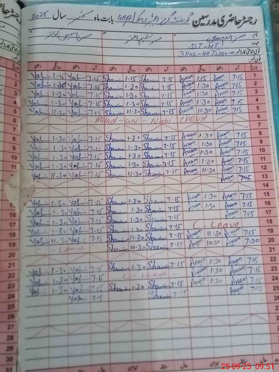 | Name: Sy**** Sh**** UnNi**** Designation: (School Headmaster's/Headmistress's) EST Phone/Cell Number: 03**** |