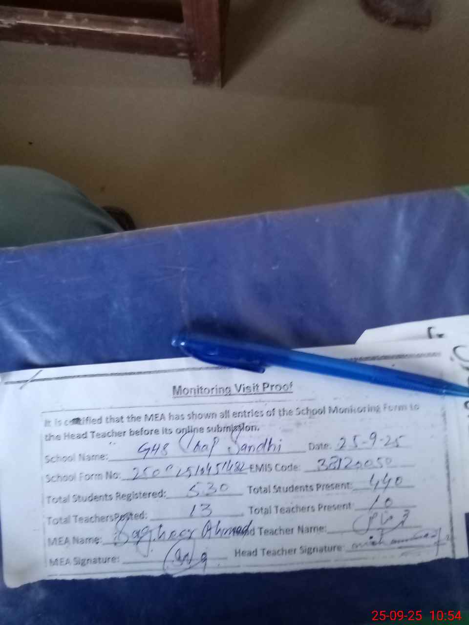 | EMIS Code: 38120050 | Name of School: GHS CHAP SANDI | |||