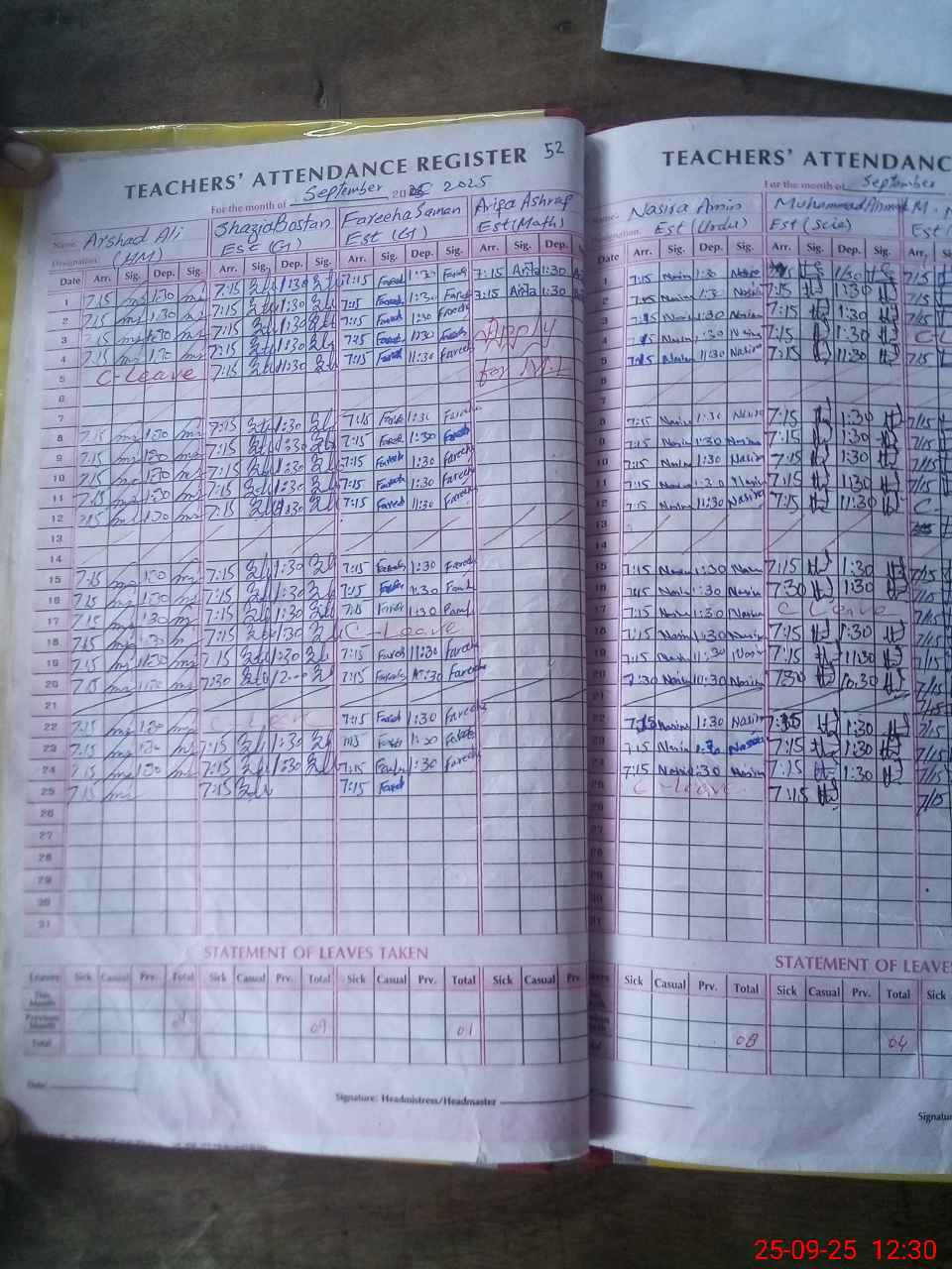 | Leave | Duty | Absent | Maternity | Medical | Ex- Pak |