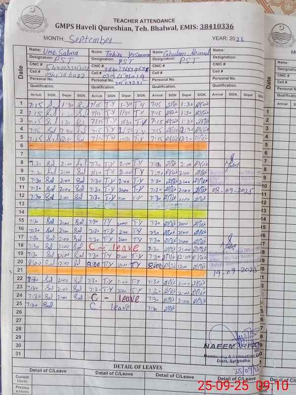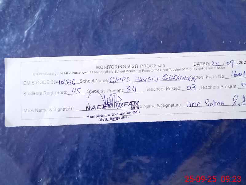 | EMIS Code: 38410336 | Name of School: GMPS HAVELI QURESHIAN | |||