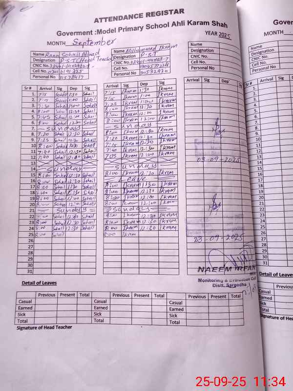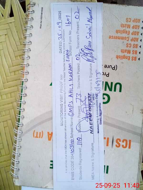 | EMIS Code: 38410340 | Name of School: GMPS AHLI KARAM SHAH | |||