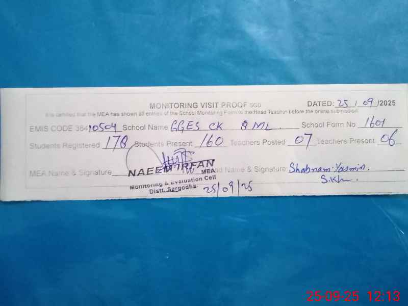 | EMIS Code: 38410504 | Name of School: GGES CHAK NO.8 ML | |||
