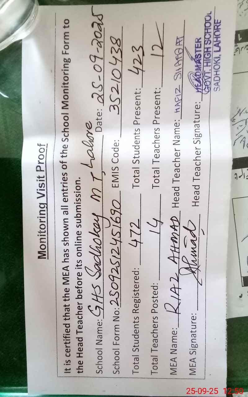 | EMIS Code: 35210438 | Name of School: GHS SADHOKI (Newly upgraded) | |||