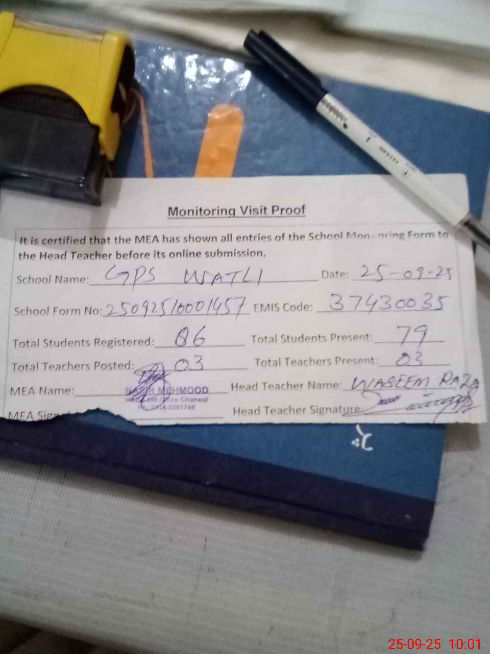 | EMIS Code: 37430035 | Name of School: GPS WATLI | |||
