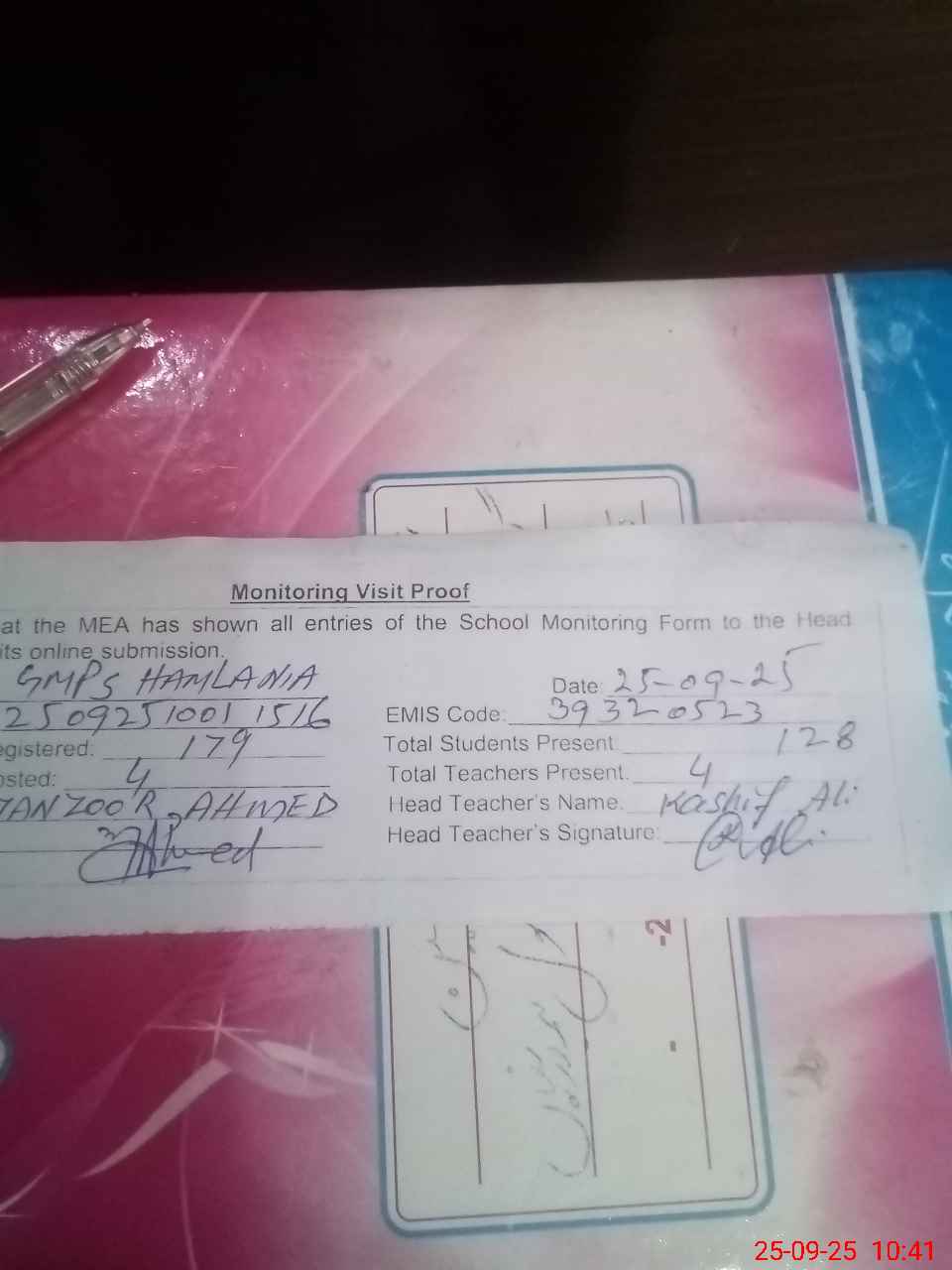 | EMIS Code: 39320523 | Name of School: GMPS HAMLANIA | |||