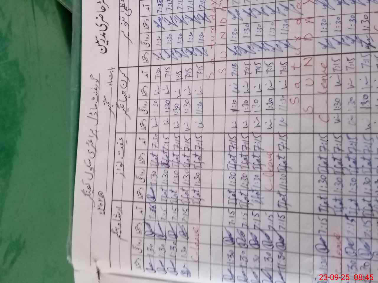 | CNIC | Full Name | Designation | R/C | Absence During Last Calender Month |