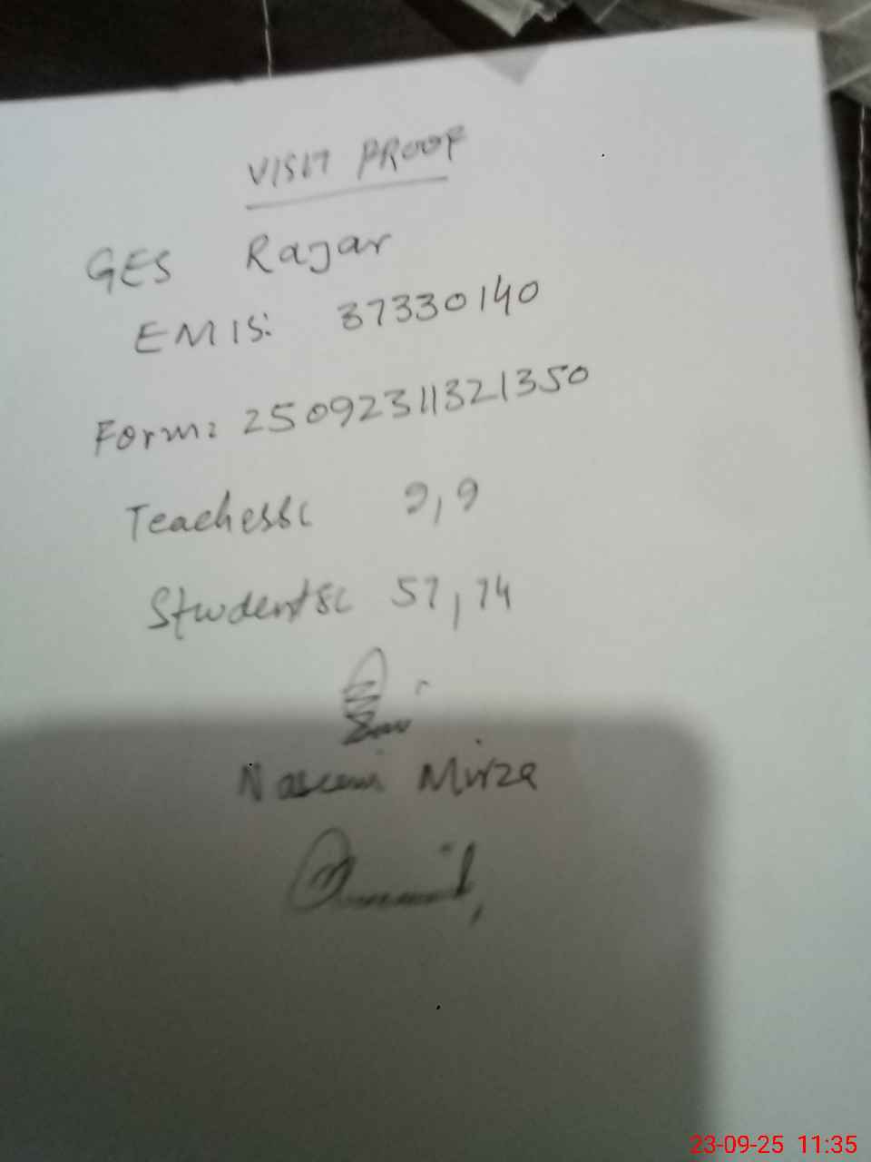 | Attendance Register | Head Teacher | MEA with School | Visit Proof |