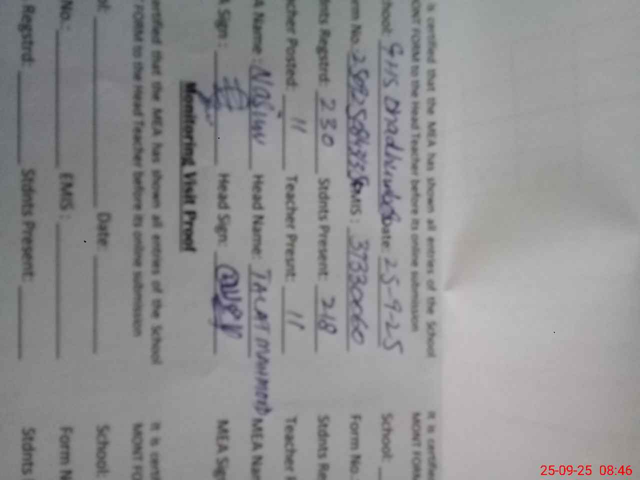 | Monitoring Date: 25-09-2025 | Start Time: 25-09-2025 08:00 AM | End Time: 25-09-2025 08:46 AM | Name of MEA: Na**** Sh**** | |