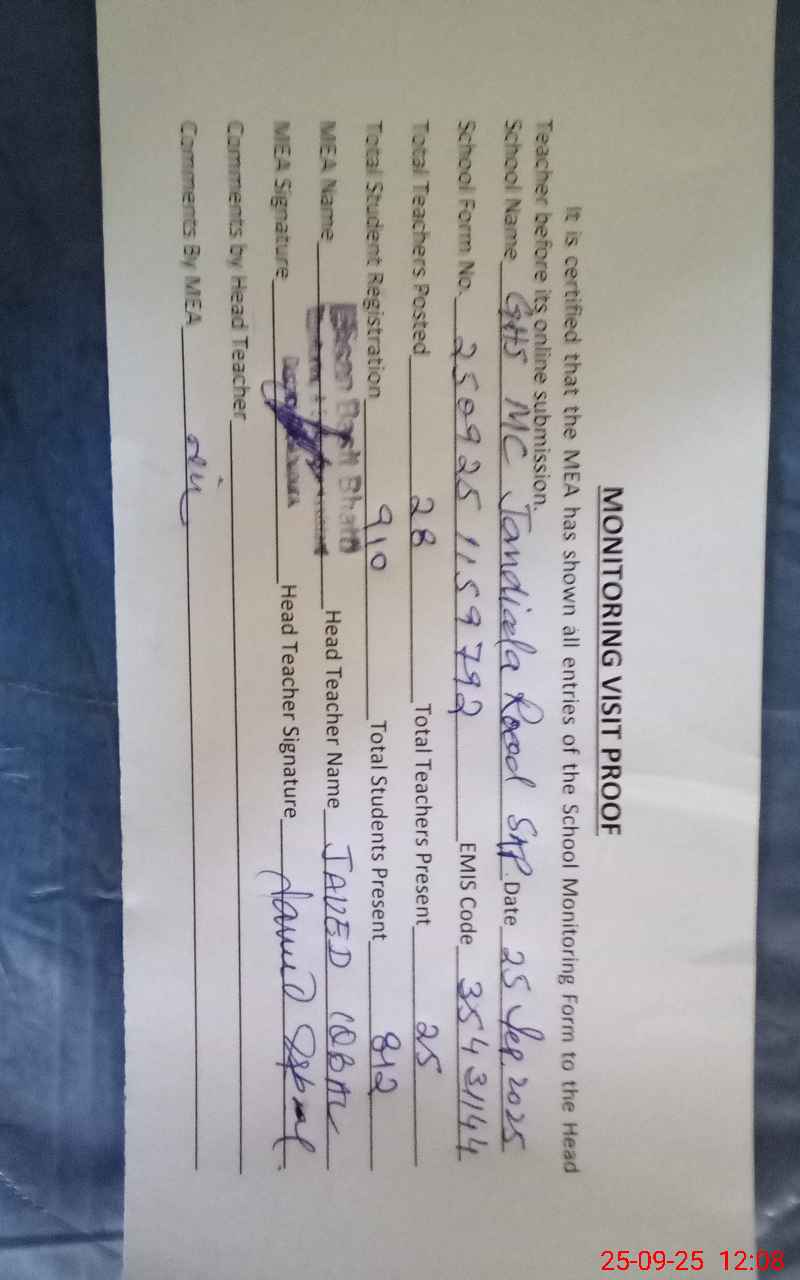 | EMIS Code: 35431144 | Name of School: GHS MC JANDIALA ROAD SHEHR | |||