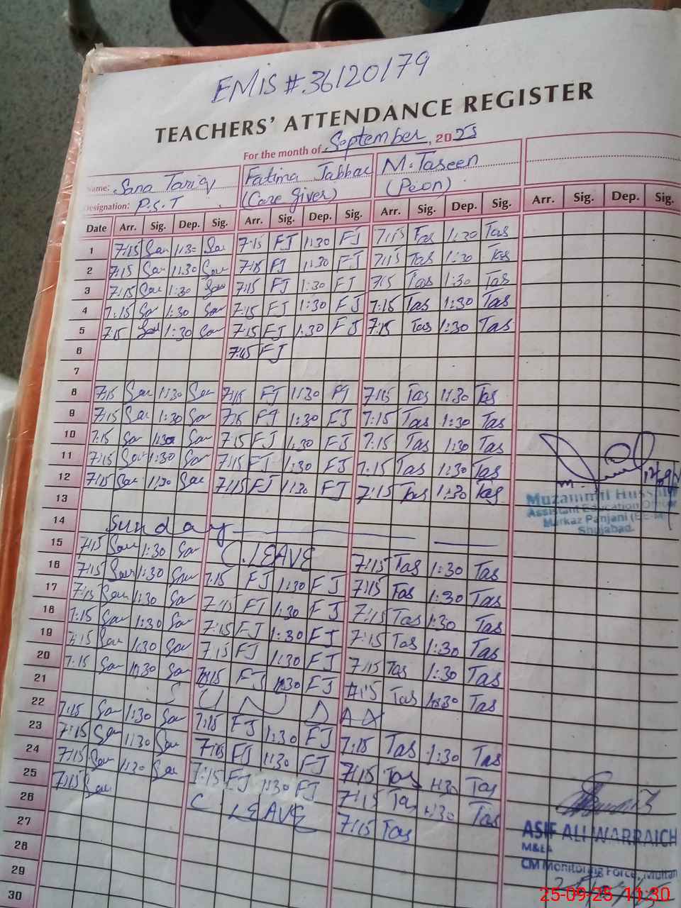 | Name: Sa**** Ta**** Designation: (School Headmaster's/Headmistress's) PST Phone/Cell Number: 03**** |