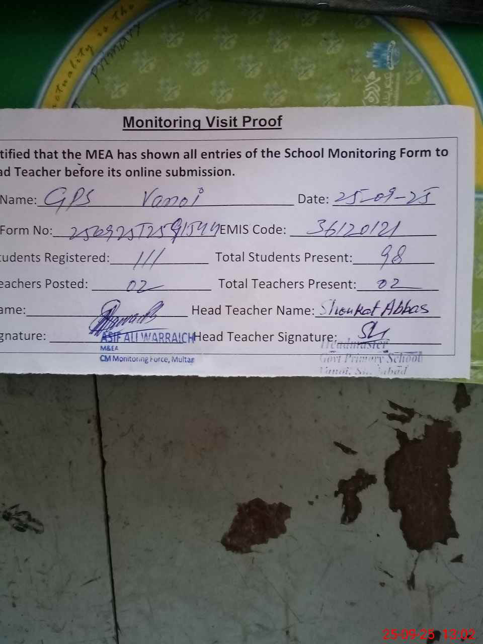 | EMIS Code: 36120121 | Name of School: GPS VANOI MOUZA VANOI P.O MATOTLI TEH.SHUJABAD | |||