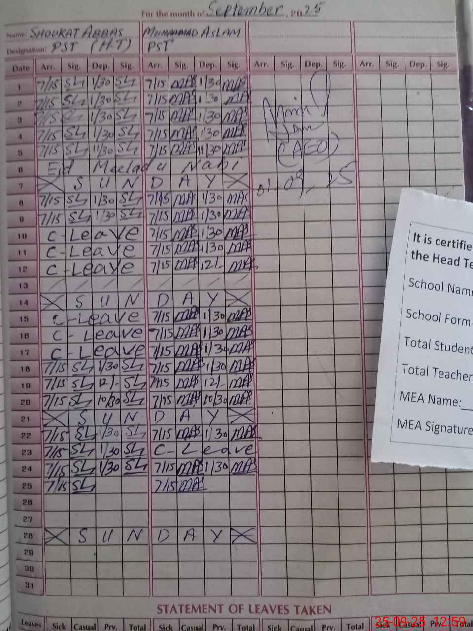| Name: Sh**** Ab**** Designation: (School Headmaster's/Headmistress's) PST Phone/Cell Number: 03**** |