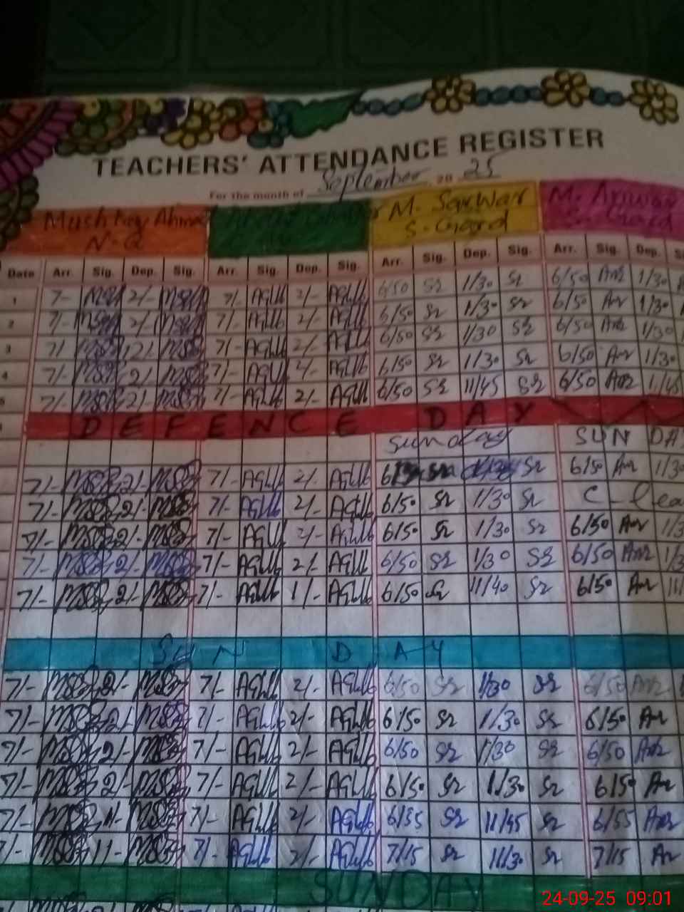 | CNIC | Full Name | Designation | R/C | Absence During Last Calender Month |