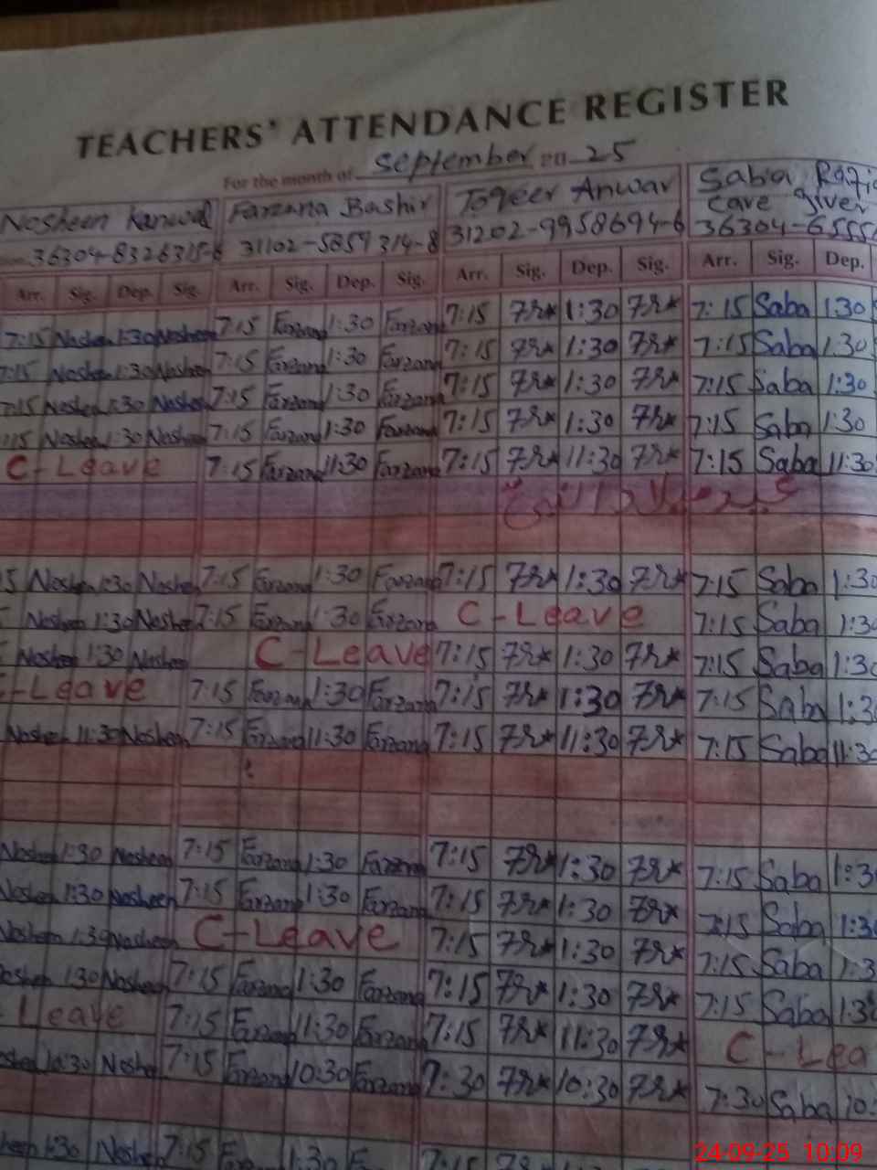 | CNIC | Full Name | Designation | R/C | Absence During Last Calender Month |