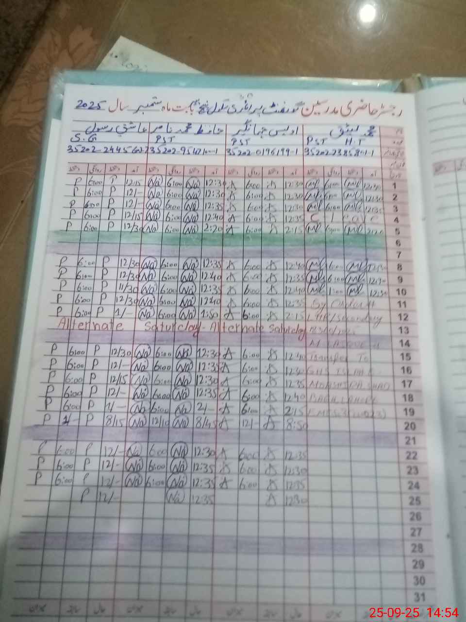| CNIC | Full Name | Designation | R/C | Absence during last cal. month |