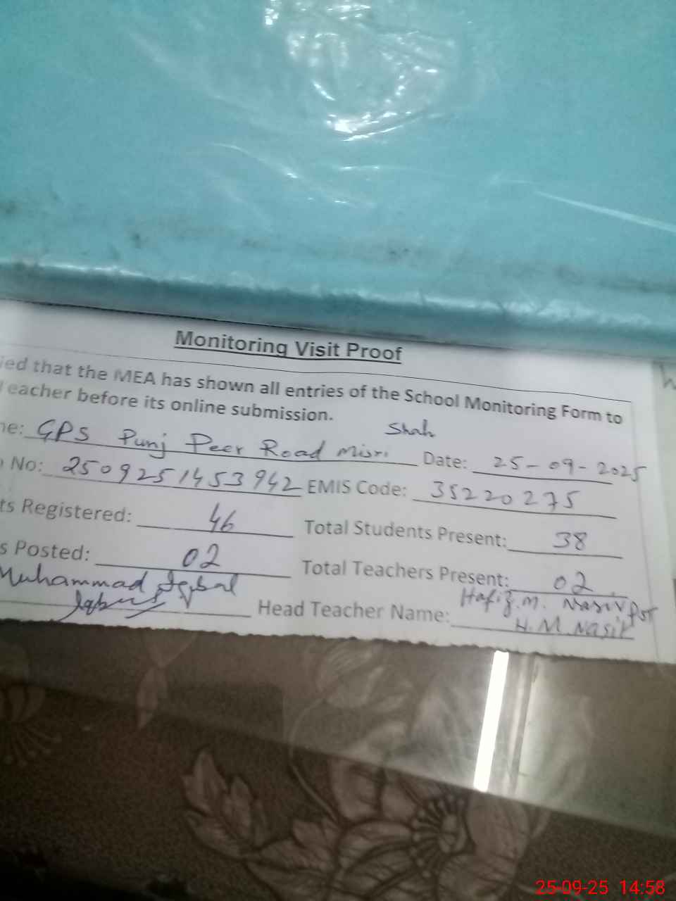 | EMIS Code: 35220275 | Name of School: GPS PUNJ PEER ROAD MISRI SHAH | |||