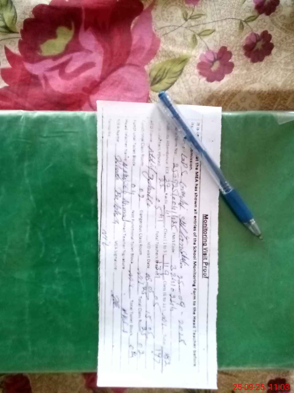 | Attendance Register | Head Teacher | MEA with School | Visit Proof |