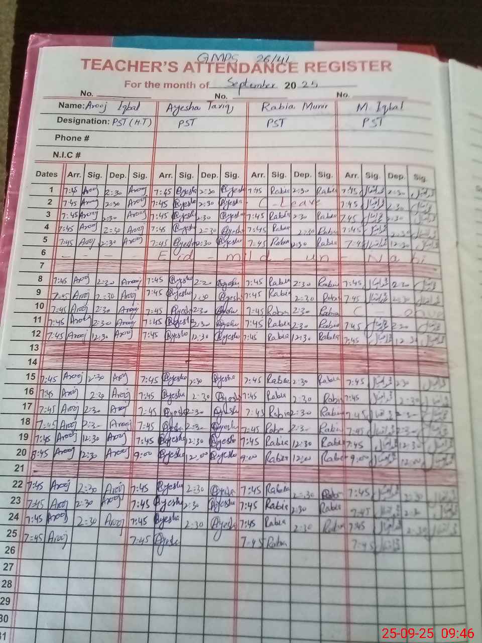 | Name: AR**** IQ**** Designation: (School Headmaster's/Headmistress's) PST Phone/Cell Number: 03**** |