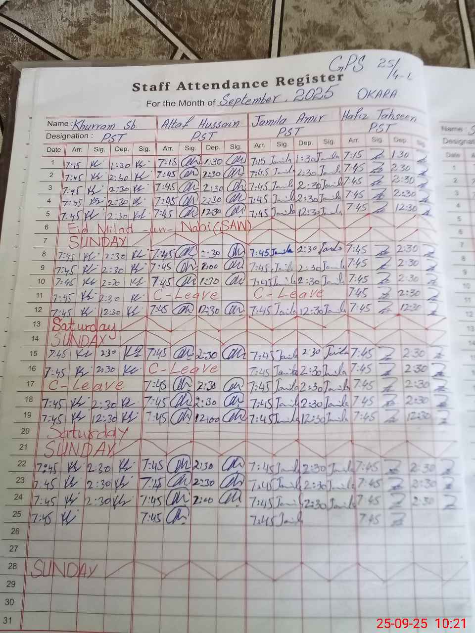 | CNIC | Full Name | Designation | R/C | Absence During Last Calender Month |