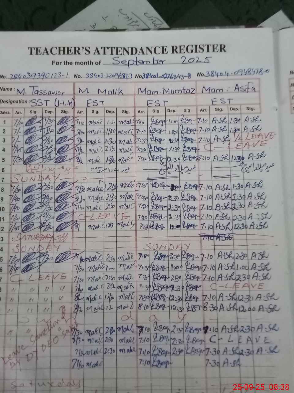 | Name: MU**** TA**** NA**** Designation: (School Headmaster's/Headmistress's) SST ARTS Phone/Cell Number: 03**** |
