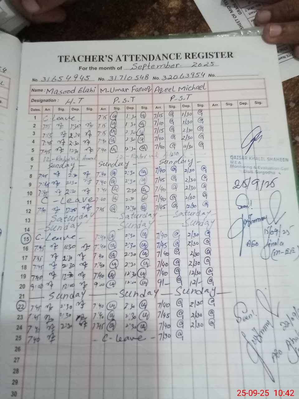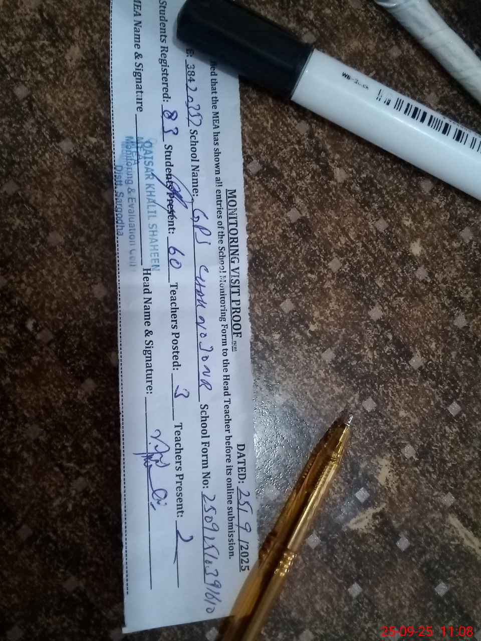 | Attendance Register | Head Teacher | MEA with School | Visit Proof |