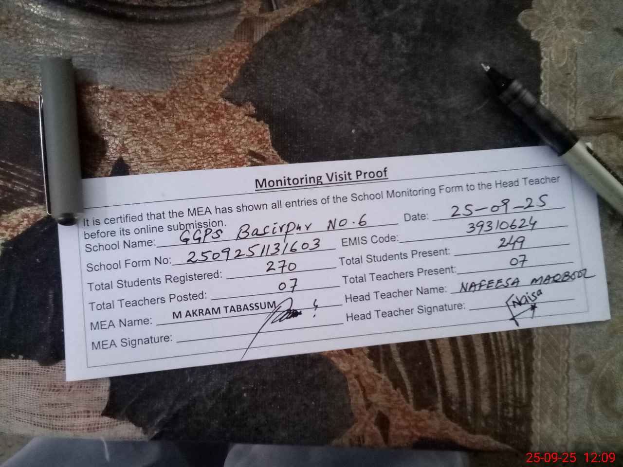 | EMIS Code: 39310624 | Name of School: GGPS BASIR PUR NO 6 | |||