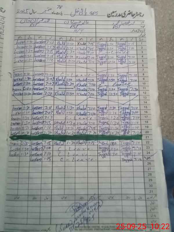 | CNIC | Full Name | Designation | R/C | Absence During Last Calender Month |