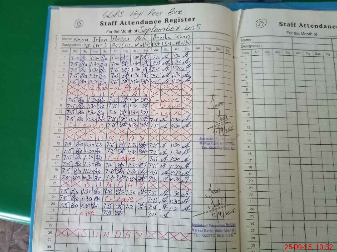 | Name: NA**** IR**** Designation: (School Headmaster's/Headmistress's) PST Phone/Cell Number: 03**** |
