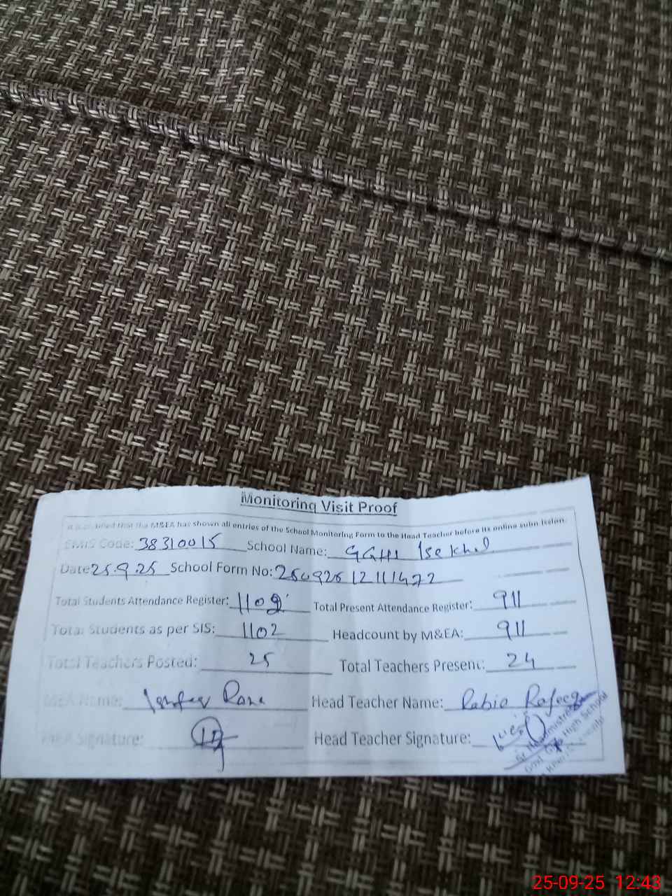 | EMIS Code: 38310015 | Name of School: GGHS ISA KHEL | |||