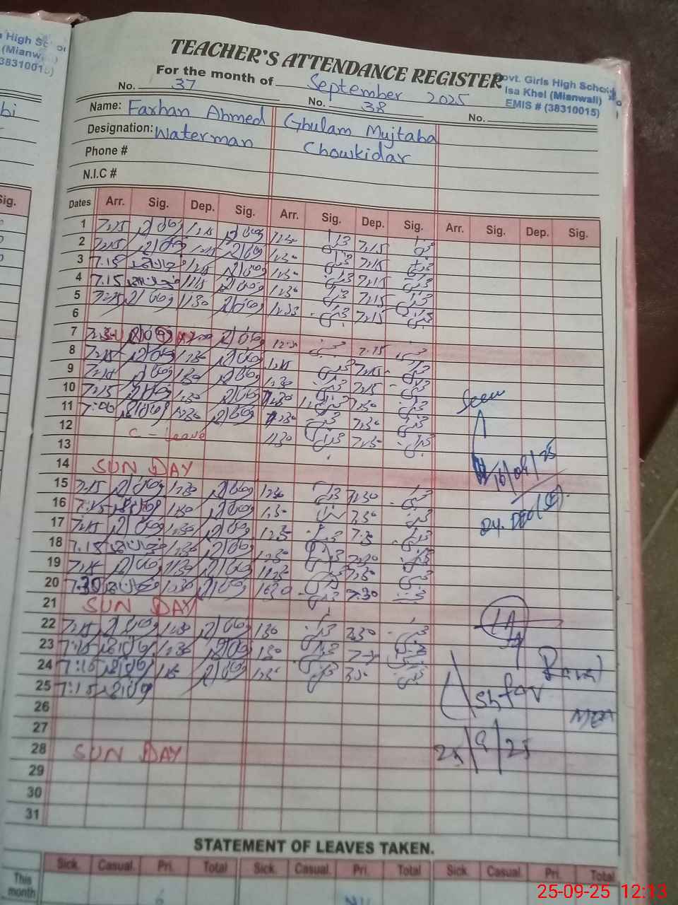 | Name: Ai**** Kh**** Ha**** Designation: (School Headmaster's/Headmistress's) Sst Phone/Cell Number: 03**** |