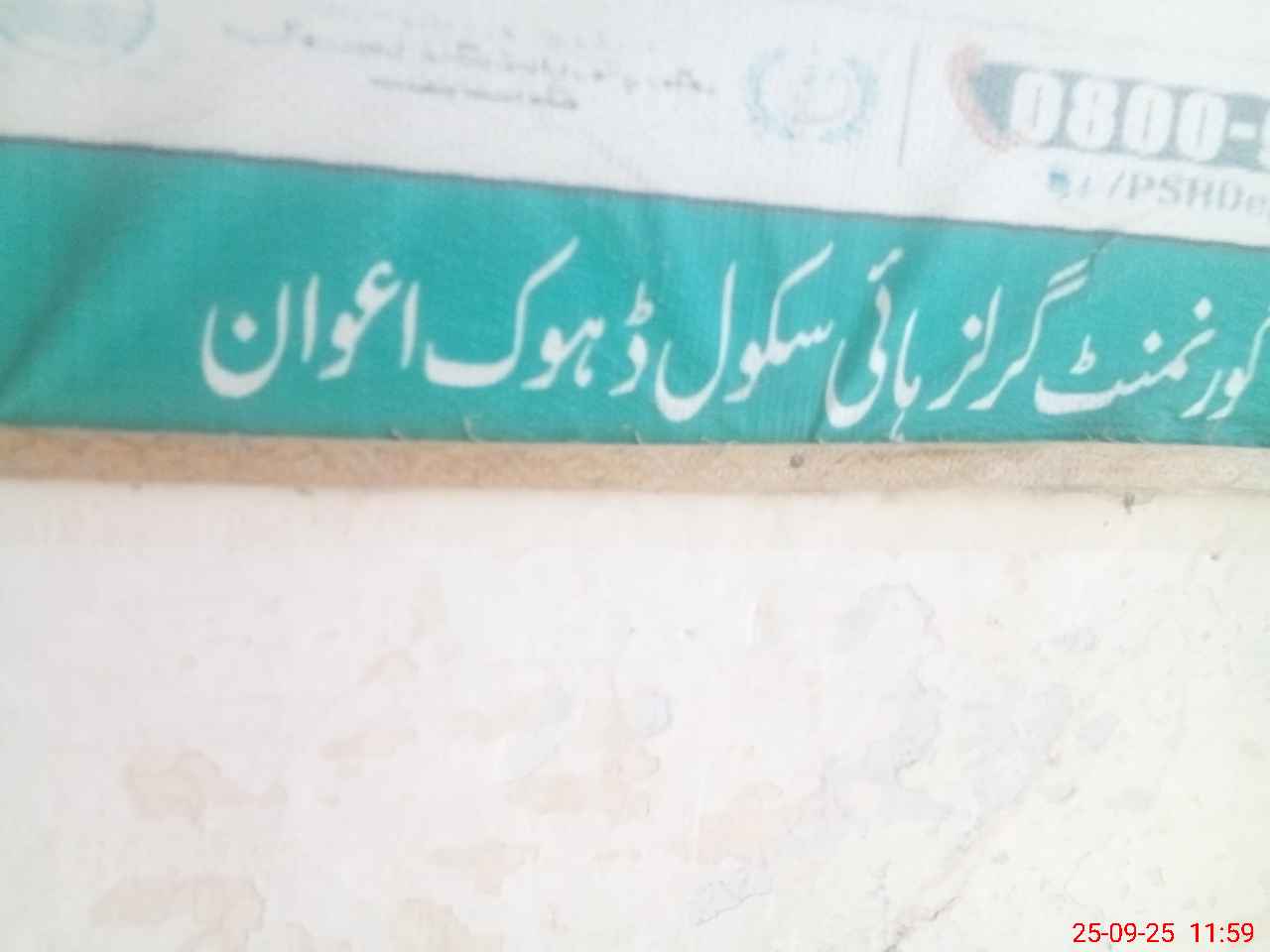 | EMIS Code: 37360135 | Name of School: GGHS DHOK AWAN | |||