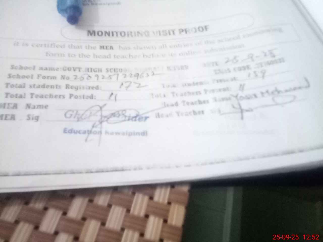 | Attendance Register | Head Teacher | MEA with School | Visit Proof |