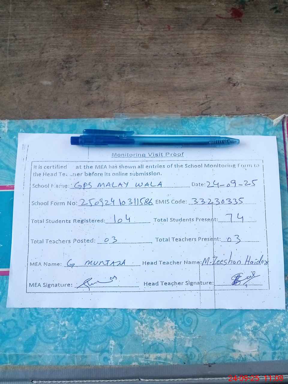 | EMIS Code: 33230335 | Name of School: GPS MALAY WALA | |||