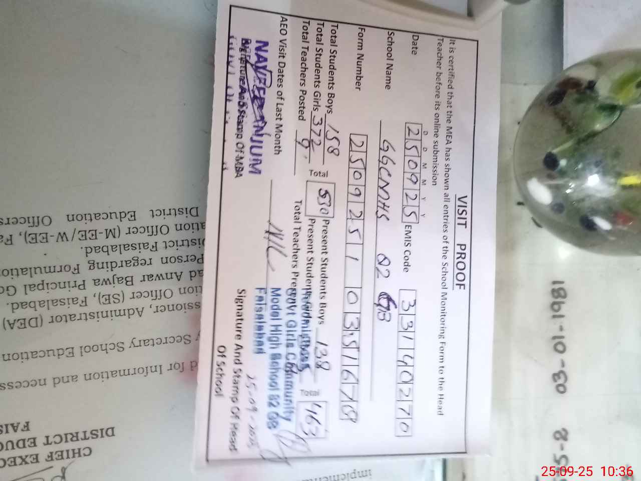 | EMIS Code: 33140270 | Name of School: GGCMHS CHAK 82 GB | |||