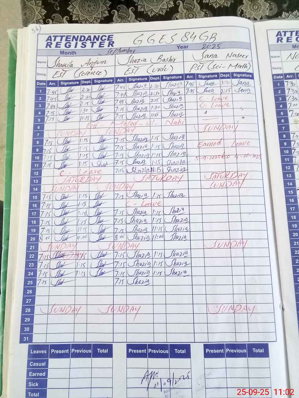 | Leave | Duty | Absent | Maternity | Medical | Ex- Pak |