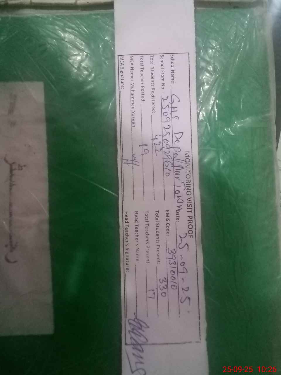 | EMIS Code: 39310010 | Name of School: GHS DEPALPUR TOWN | |||