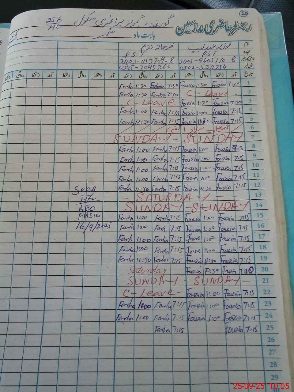 | CNIC | Full Name | Designation | R/C | Absence During Last Calender Month |